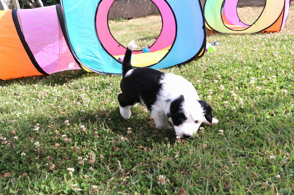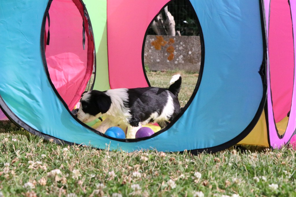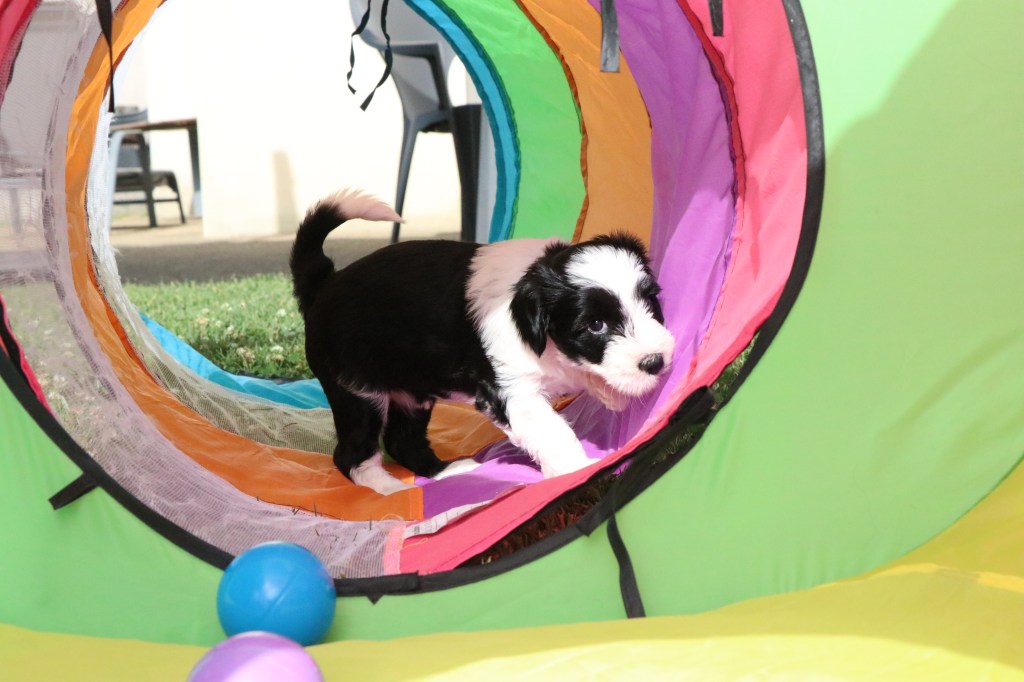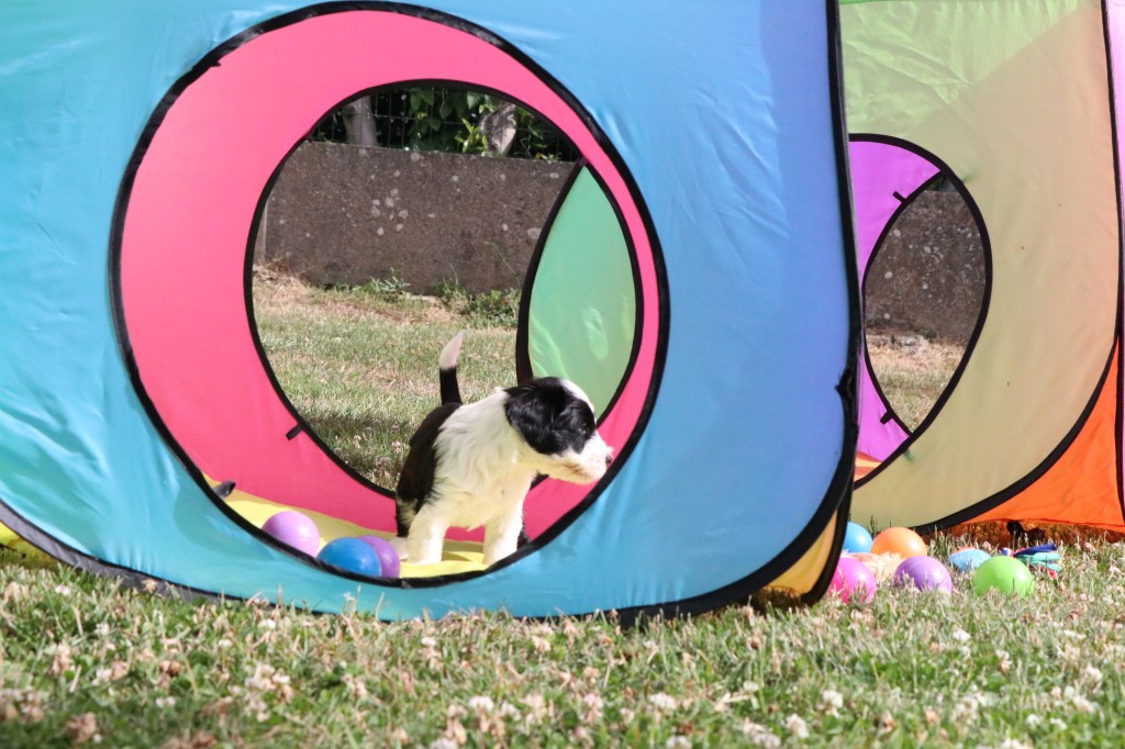 3) Pour leur socialisation, les chiots sont élevés en famille et dans la maison.