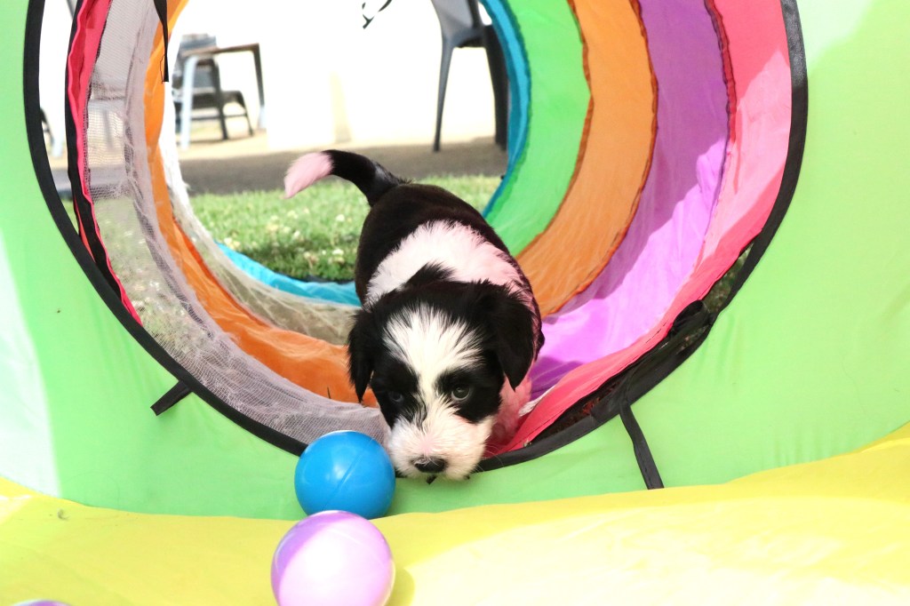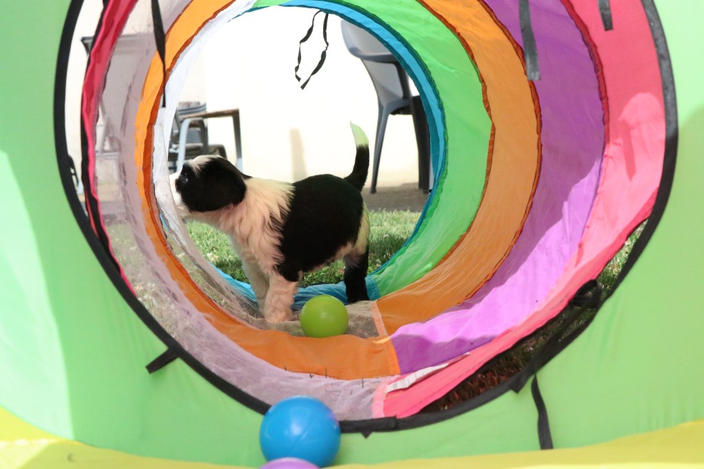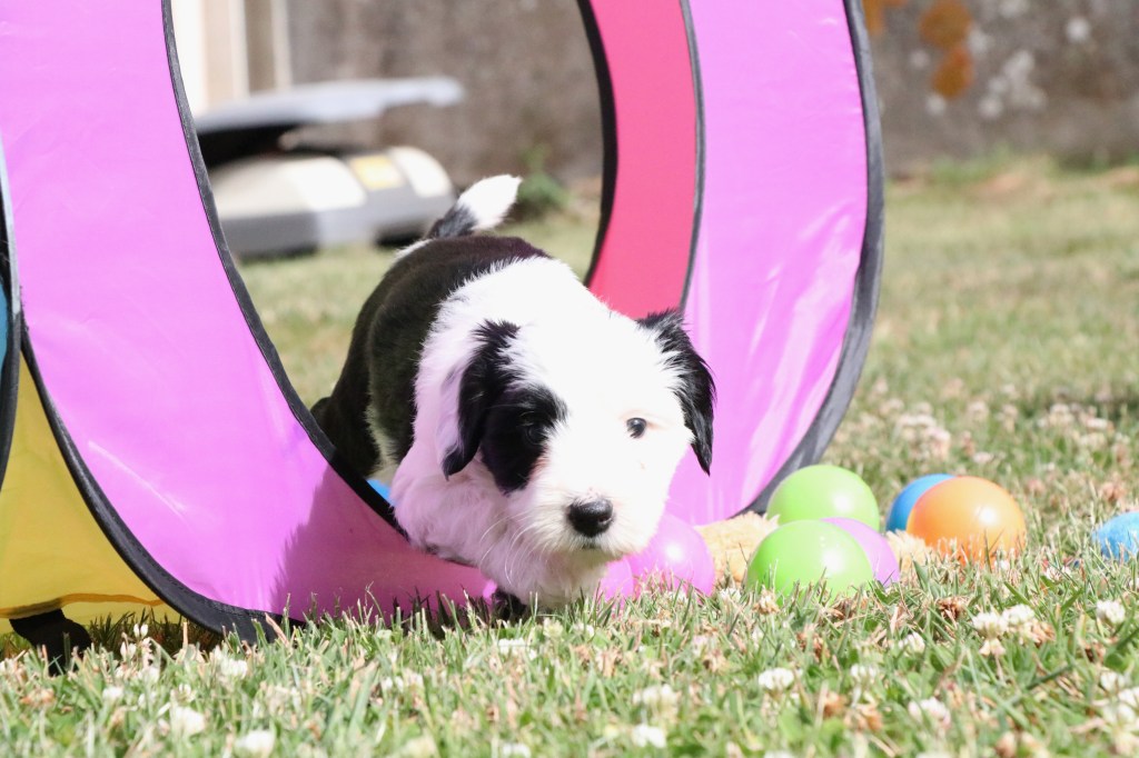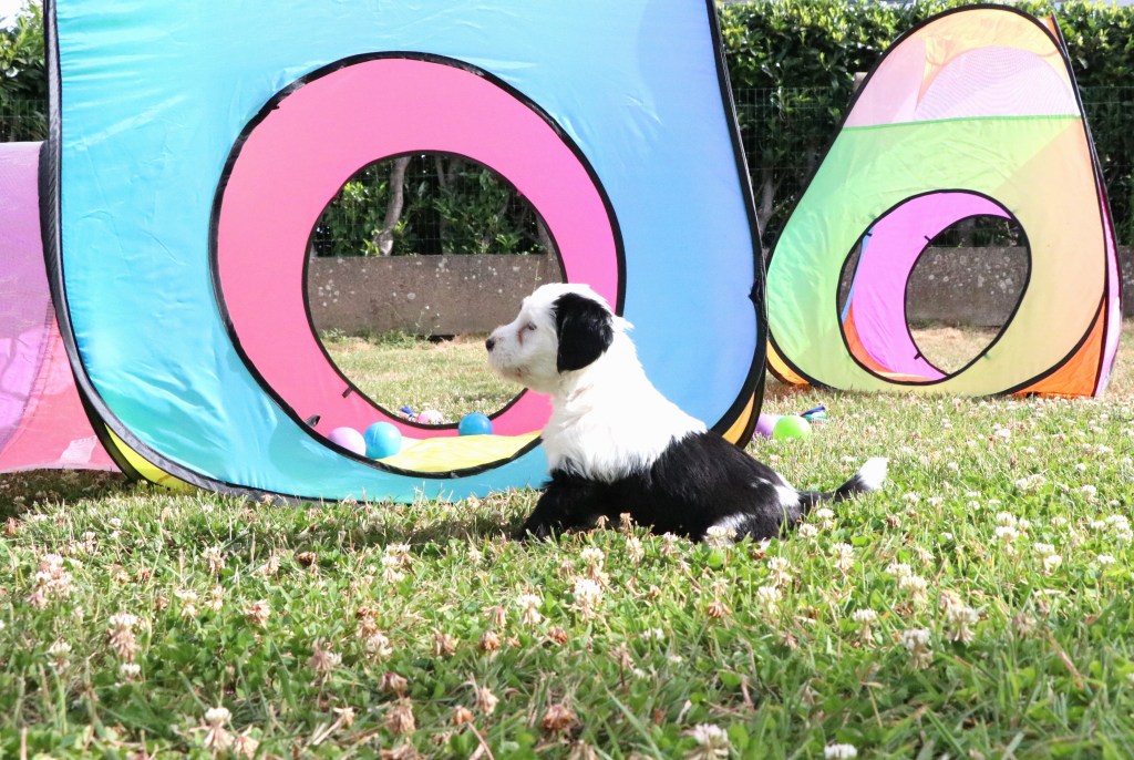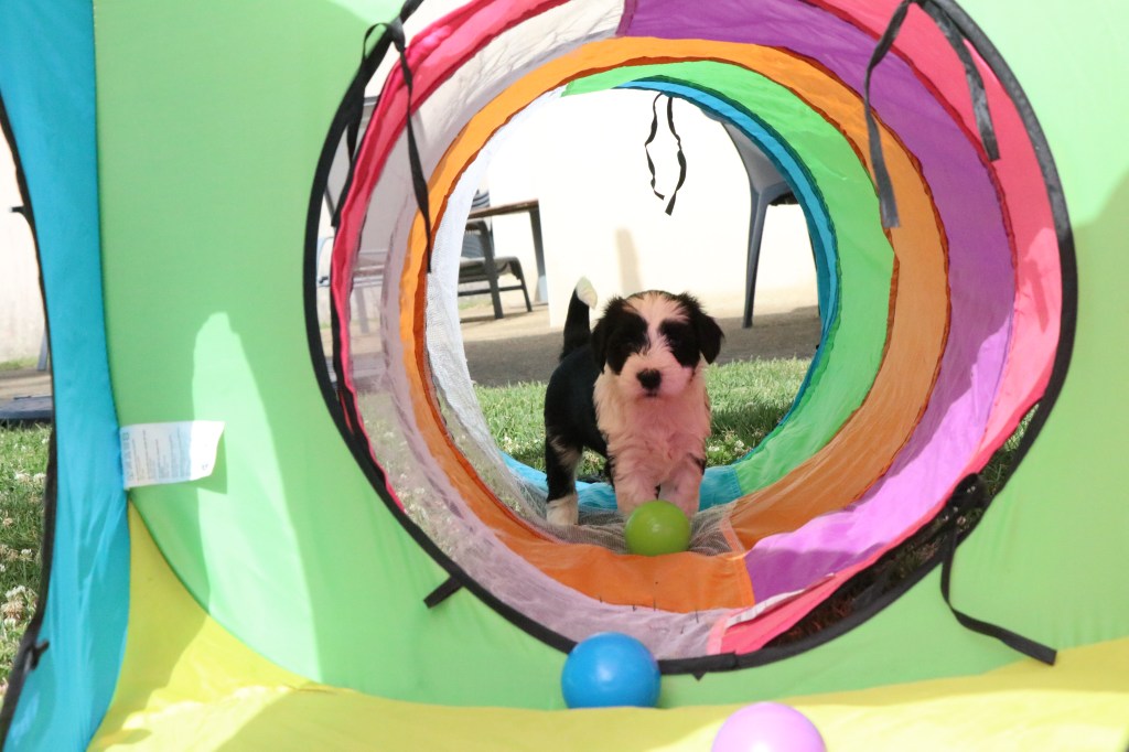 3) Pour leur socialisation, les chiots sont élevés en famille et dans la maison.